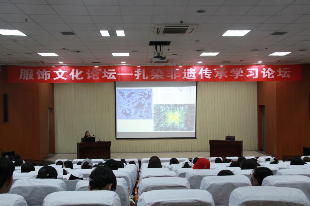 论坛在图书馆一楼报告厅召开,郭海燕老师从中国染色的发展历史、传统手工染色的定义、概念、分类到流派传承及服饰、文创产品的创作方面做了详细阐述,也给了同学们很好的建议,让同学们感觉到了传统文化在设计中的重要性。