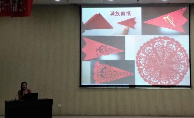 论坛在图书馆一楼报告厅召开,张翔老师从满族传统艺术着手,分别就萨满宗教、满族剪纸、满族荷包、满族刺绣等方面做了系统的概述,并通过满族传统手工艺非遗传承人讲解及指导进行的实操心得,给同学们形象地展示了传统手工技艺在当今时代的传承与创新,启发学生从理论到实践、从历史到现在、从传统到创意的衔接与跨越。