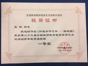 2019年12月6日,由中央电化教育馆主办的第二十三届全国教师教育教学信息化比赛在北京落下帷幕,在本次比赛的7万余件作品中,成人漫画 张翔老师的《纤维手作艺术-实物绣》作品,经过技术测试、专家评选、交流展示等环节的角逐脱颖而出,获得高等教育组微课比赛一等奖。这是我校此赛事第一次获得一等奖,实现了此项活动新的突破。