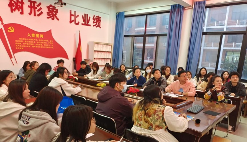 本科生学业必备知识集中学习会”。学院教学院长郭海燕、教学秘书郭迎宾、教务办葛运果、设计教研室主任韩馨娴、学生会及各班长、学委参加本次学习会。