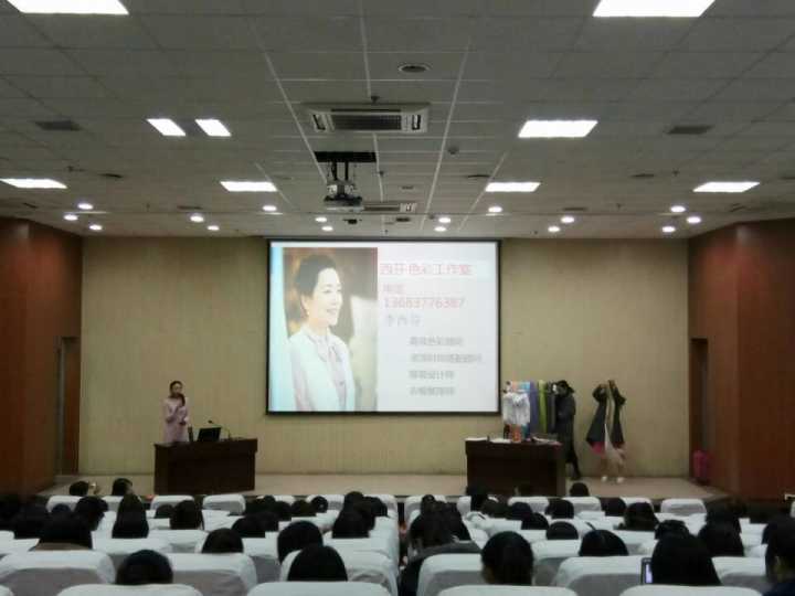 毕业后,创立西芬·色彩工作室,从事形象托管服务。报告会包含了解自身、四季色彩理论、着装季型法则等内容。李西芬从色彩、量感等角度分析了八大风格,并结合工作室日常工作,演示了确定个人风格的过程,并通过丝巾选择这一角度与现场学生展开互动,气氛热烈。
