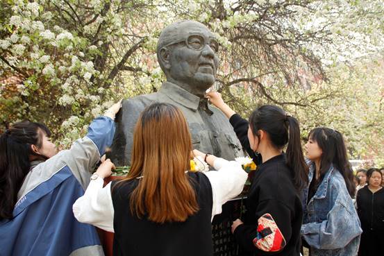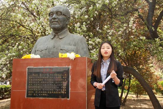 活动首先进行“海棠寄情”环节,团委副书记刘金金以校门口盛放的海棠花为引介绍了清明节的习俗,并讲述了海棠树下雕塑我校第一任校长罗玉川的生平事迹。他的热血奉献,他的鞠躬尽瘁,使同学们感触颇深。随后进行“追忆先辈”环节,服装172班团支书霍露露讲述的是空军飞行员王伟的英雄故事,他在执行对非法进入我国领空的美军用侦察机跟踪监视任务时,坚毅果敢,沉着冷静,却不幸牺牲,用生命谱写了一曲爱国主义和革命英雄主义的壮丽赞歌。服设181班团支书张文玉则讲述了革命烈士邱少云和刘胡兰的英勇事迹,在民族和国家的生死危亡面前,他们抛头颅洒热血的革命精神,值得我们永远铭记!之后进行的是“清明洗礼”环节,由学生代表为罗玉川同志的雕像进行清洁擦拭。最后进行了“哀默致敬活动”环节,全体同学肃立默哀一分钟,表达对先烈们的崇高敬意和深深缅怀。