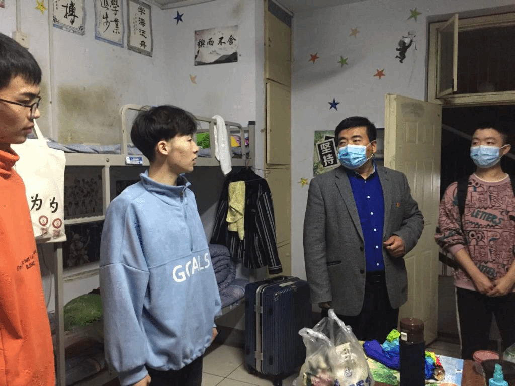 党委书记郭建勋,院长常丽霞,党委副书记吴峰,新生辅导员刘颖莹前往新生宿舍,看望20级新生。郭建勋和新生们亲切交谈,希望同学们尽快适应环境,实现角色转化,以良好的精神风貌投入到大学的学习生活中。常丽霞和吴峰询问起了学生们的家乡,鼓励宿舍的同学们要团结,要照顾好外省的同学,让他们充分感受到同学间的热情。领导的关切问候,让同学们倍感温暖。