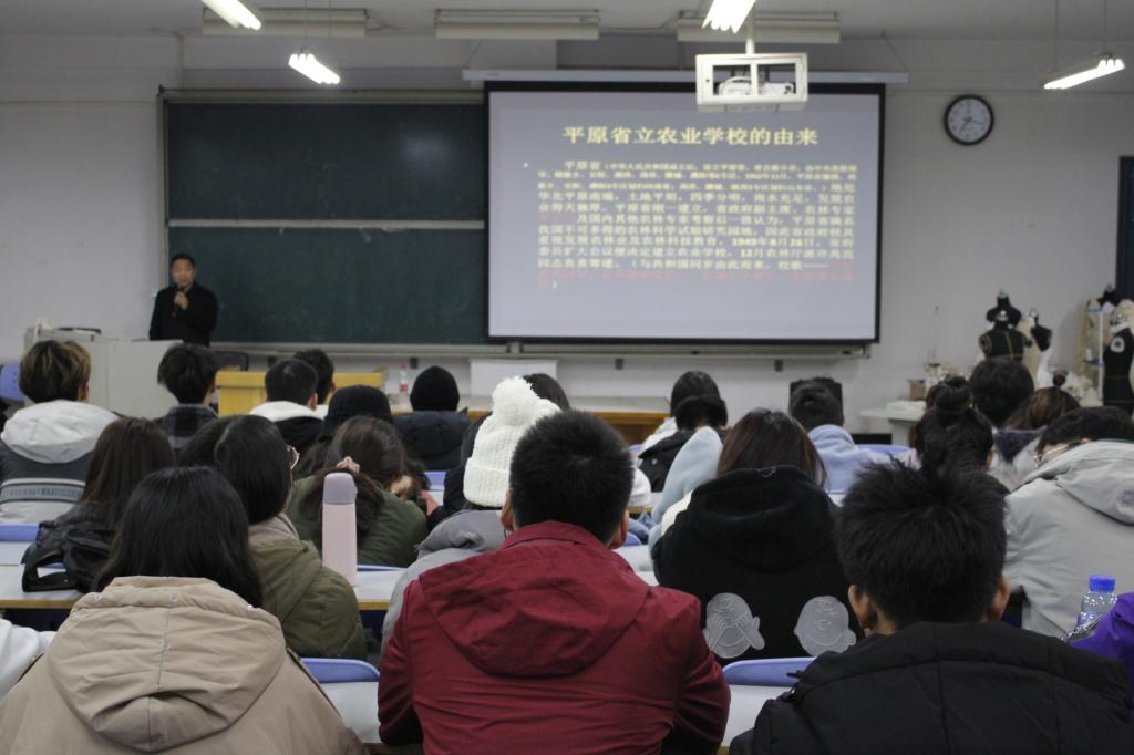 徐武从办学历史讲起,讲述了我校艰辛的发展历程和长期积淀后的辉煌成就,并通过一组组老照片穿越时空,回忆往昔,史料翔实,图文并茂,充分展示了学校八十年来在教学历史、科研文化、人才培养、社会服务的发展。他结合自己的在校经历,以及优秀校友的成功事例,鼓励学生努力学习,做称职科院人。最后,以一首《趁你还年轻》作为结尾,呼吁学生把握现在,做好自己。