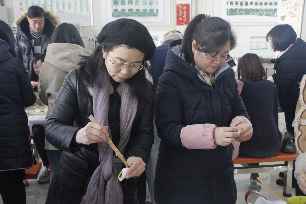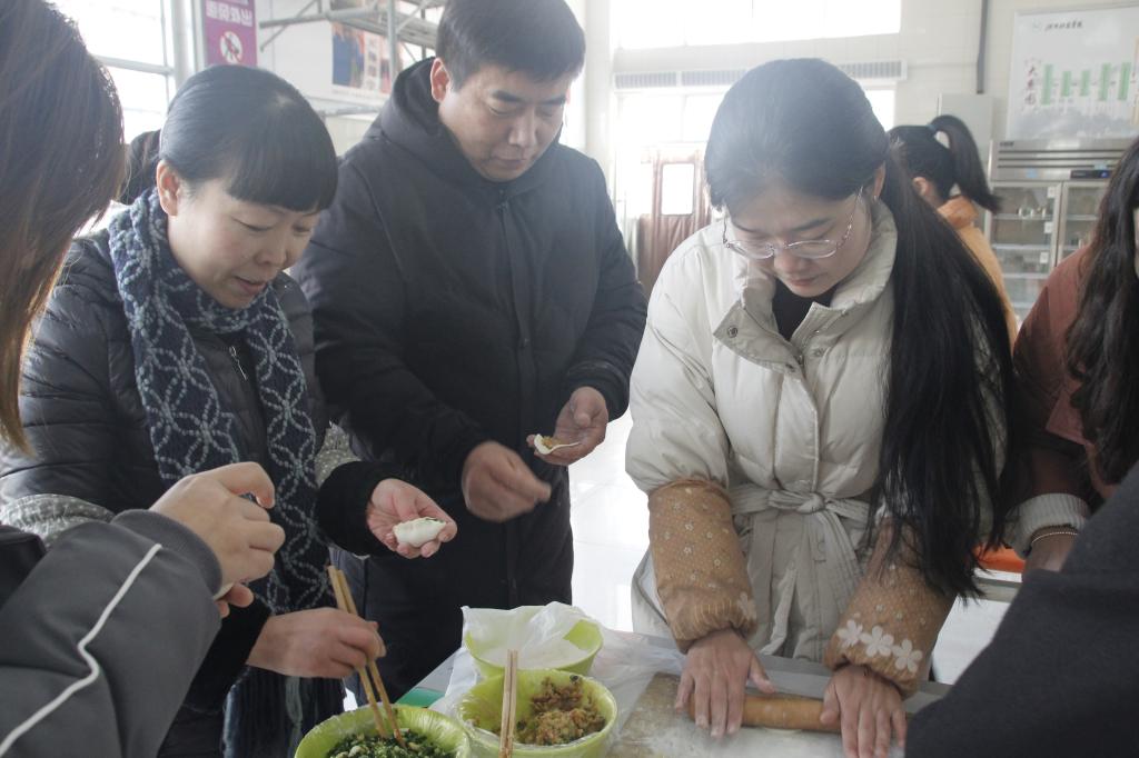 党委书记郭建勋、院长常丽霞等党政班子领导与学生们齐聚一堂,一同包饺子,过冬至。