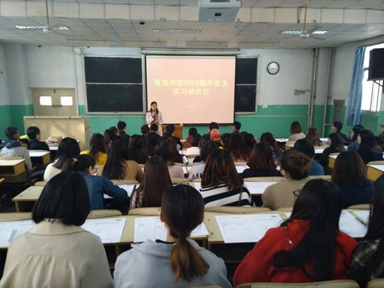 在二号楼合四举行2018届毕业生实习动员会。副院长段卫红,教学秘书李爱英和18届毕业生辅导员董华明出席了本次大会,出席大会的还有2018届百余名毕业生。