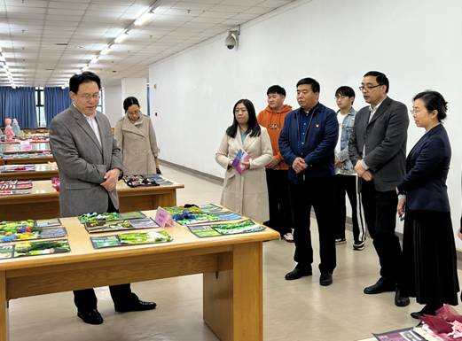 开幕式结束后,冯启高一行到图书馆二楼观看了教学成果及优秀作品展。