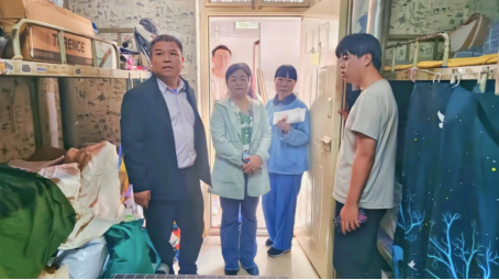 在宿舍实地查看中,学院领导与留校学生亲切交流,了解学生思想动态,特别是毕业生面临即将进入社会,外出实践、寻找就业机会;鼓励大家尽早就业,把所学知识转化为回报社会的本领,同时要求全院教职工积极联系就业单位推荐毕业生。嘱咐同学们无论是在校内校外一定要增强安全意识,离开宿舍要及时切断电源,做到人走断电断水,电源插座不留充电器设备,不存放和使用违禁电器,遇到问题要及时反馈给辅导员老师等等。力争做到及时发现、尽早干预、妥善解决。