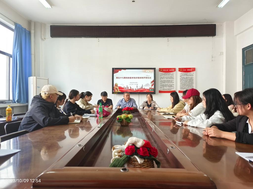 在11#204会议室举行第五十七期入党积极分子培训班开班仪式暨首场报告。学院党委书记游红伟,党委副书记高莉、团委书记侯小鹏、辅导员姚志明及21名入党积极分子参加了开班仪式。本次开班仪式由侯小鹏主持。