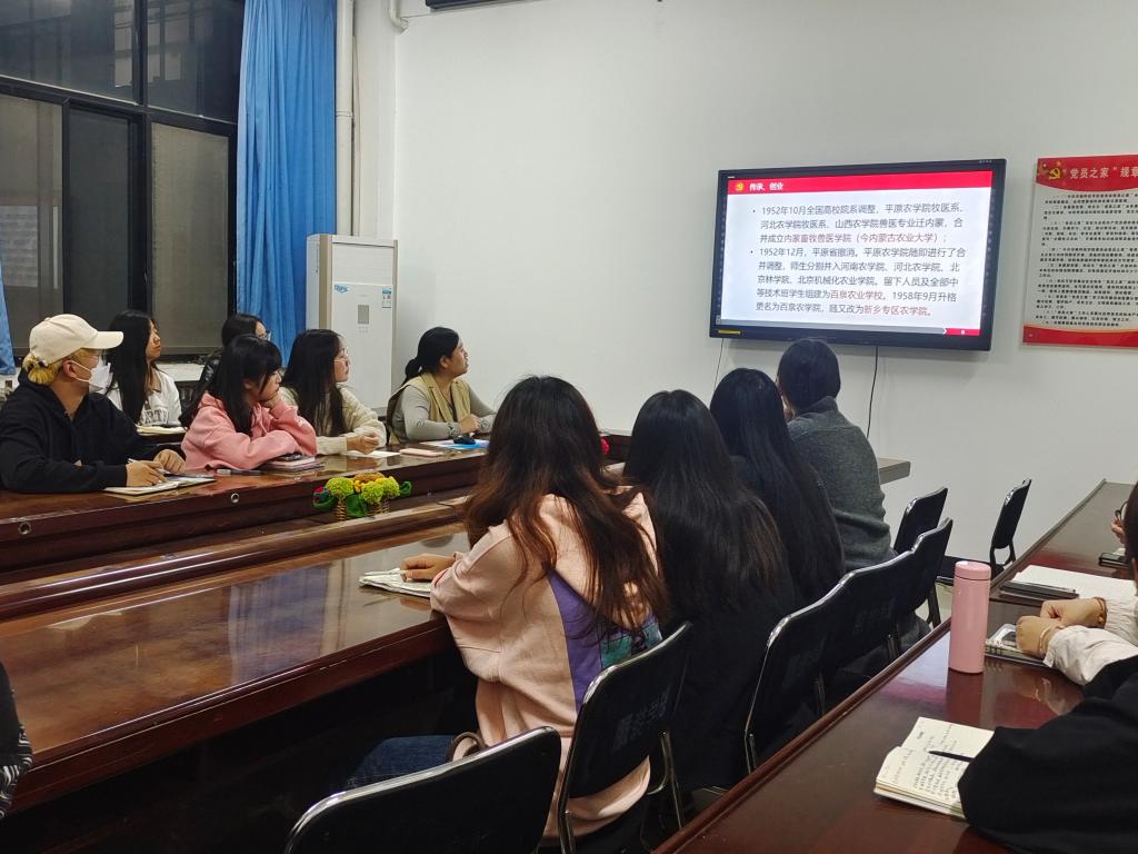 副院长王式竹以“弘扬红色文化,传承百农精神”为题,结合学校“崇德尚能 知行合一”的校训,“自立自强 求是创新”的校风,讲解了我校的艰辛办学历程和辉煌成就,使同学们更加深刻感悟到了自立自强、艰苦奋斗的“百农精神”。