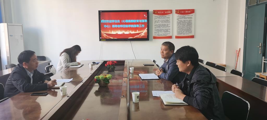 首先,游红伟对王永铎一行莅临学院检查指导工作表示热烈欢迎,并对学院学生工作进行了介绍。团委书记侯小鹏针对学院心理健康具体工作、心理问题学生预警机制和跟踪,心理健康宣传月特色活动进行了汇报。23级辅导员姚志明汇报了新生心理健康测评情况和回访工作。