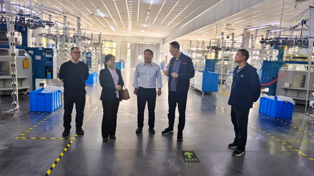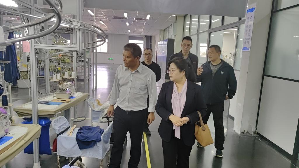 一行在学校派驻商水县结对帮扶工作队队员张勉、宋东蓥的陪同下,到盛泰浩邦纺织工业园纺织车间、印染车间、制衣车间、成衣车间进行实地考察和技术指导。