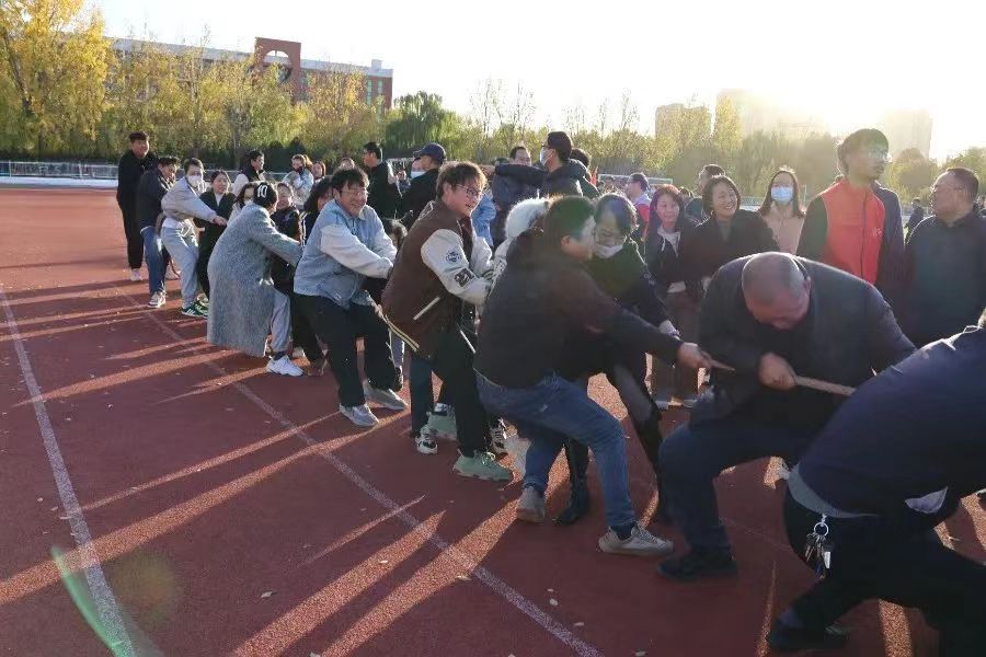 虽然天气比较冷,但依旧阻挡不住老师们健身的热情。大家以饱满的精神,边走边交流着工作中的体会,呼吸着户外新鲜的空气,感受着健步行带来的阳光与快乐。长长的队伍,多彩的旗帜,兴奋的笑脸,成为科院一道靓丽的风景。“健步行”活动之后教工们参与了拔河比赛,伴随着裁判的一声令下,教工们双手紧握长绳,齐心协力,一旁的队员纷纷为其加油,欢笑声此起彼伏,热闹非凡。