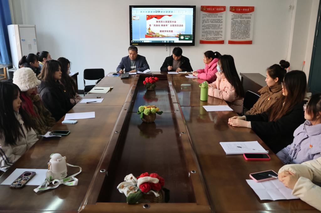 在11#204举办新党员入党宣誓大会暨“亮身份,做表率”主题党日活动,学院党委书记游红伟,团委书记侯小鹏,辅导员姚志明和学生党员参加会议,会议由侯小鹏主持。
