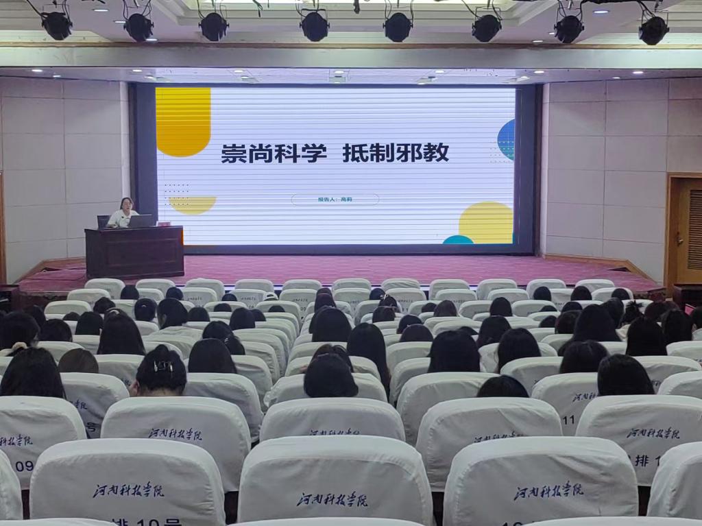 高莉以“崇尚科学 抵制邪教”为题,向249名新生作了反邪教专题宣讲报告。高莉通过真实案例,深入剖析邪教的特征和危害,教育同学们深刻认识到邪教组织的本质是反人类、反社会、反科学,引导学生树立科学的世界观、人生观和价值观,不断学习科学知识,破除封建迷信,坚决抵制邪教。通过专题报告,推进了反邪教宣传教育,提升了学生们识别邪教、防范邪教、抵制邪教的意识和能力。