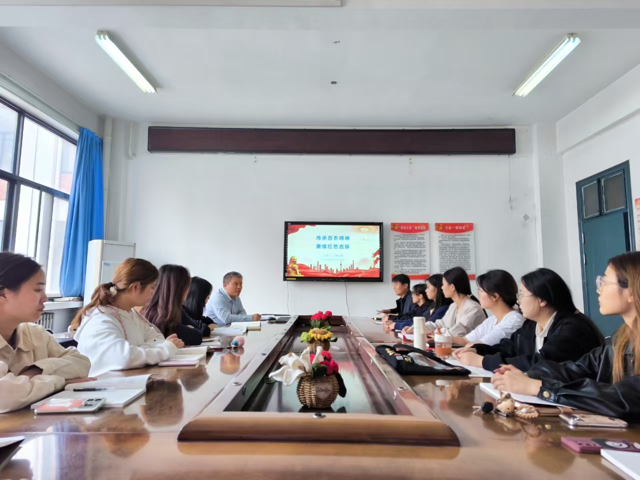 学院党委书记游红伟以“传承百农精神,赓续红色血脉”为题,围绕学校历史沿革、传承百农精神、赓续红色血脉等方面回顾了学校从创办到现在的历史,并鼓励大家要坚定理想信念,不忘初心,砥砺前行,铭记历史,珍惜当下,做好“百农精神”的传承者和实践者,为党和人民的事业奋斗终身。