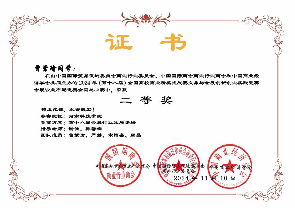 由中国贸促会商业行业委员会、中国国际商会商业行业商会和中国商业经济学会联合主办的2025年(新加坡)国际商务会展策划大赛中国地区选拔赛暨第十八届全国高校商业精英挑战赛文旅与会展创新创业实践竞赛总决赛于近期成功举办。