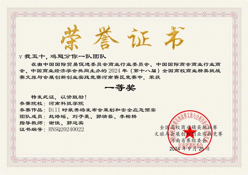 在郭海燕等教师的组织指导下,共有8个团队报名参加,历时近8个月,经过理论知识赛、校赛、省赛、国赛等层层选拔,最终“正义青年队”及“智慧火花团队”获得大赛会展安全应急沙盘赛道国赛总决赛一等奖、二等奖各一项;“v我50分你鸡翅一队”获大赛会展安全应急沙盘赛道省赛一等奖;“所以爱会消失对不队”获得省文旅短视频赛道二等奖。我校参赛作品整体布局合理、特色鲜明,在排推演应急演练、项目陈述和答辩环节,参赛队员讲解流利、逻辑缜密,获得评委一致好评。