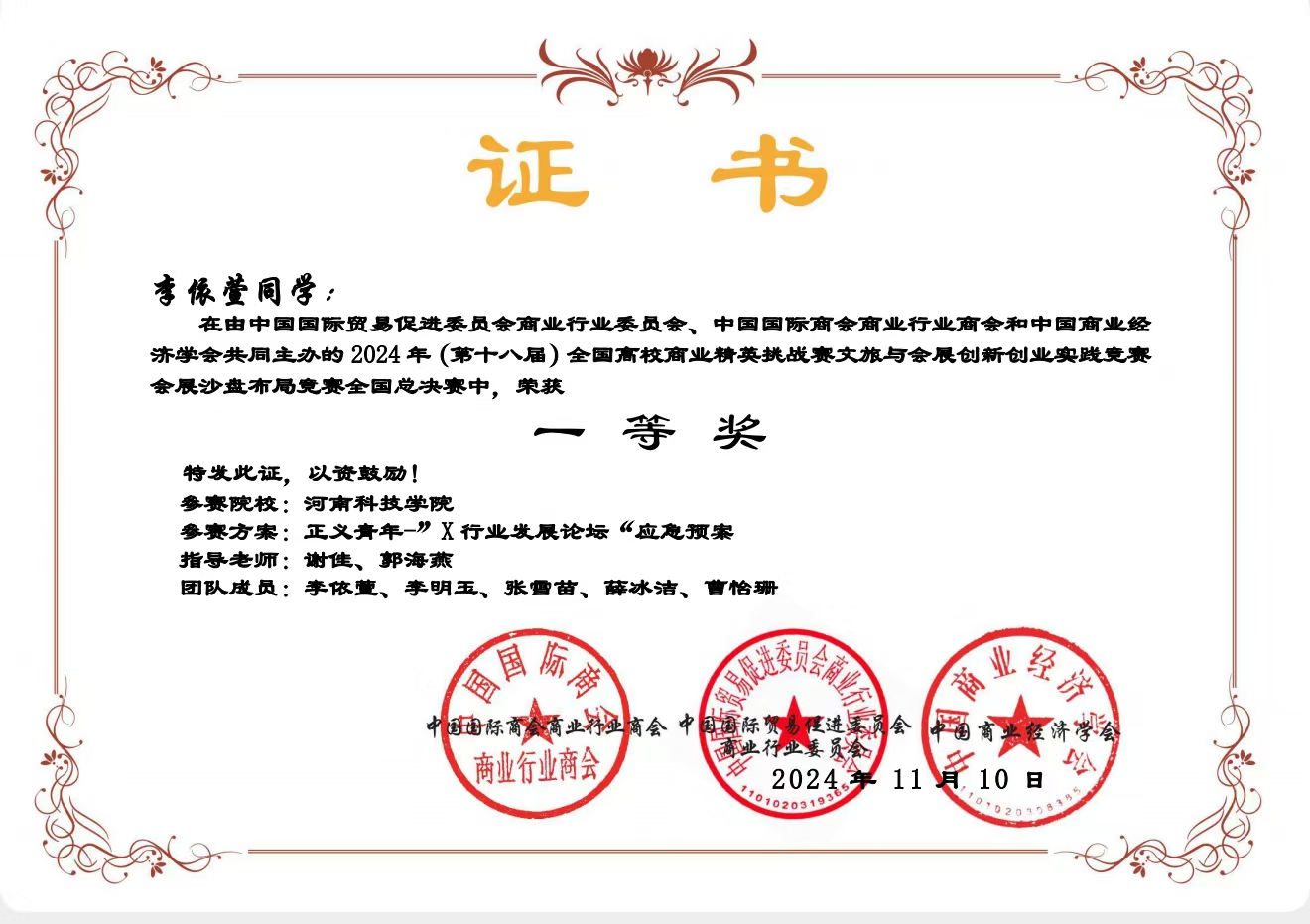 本赛事由中国国际贸易促进委员会商业行业委员会、中国国际商会商业行业商会和中国商业经济学会联合主办的国家级赛事,已连续四年被正式纳入教育部中国高等教育学会“全国普通高等大学生竞赛排行榜名录竞赛项目”名单。本次斩获国赛一等奖是成人漫画