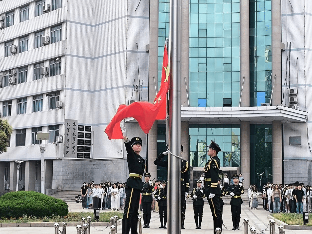早上7时整,国旗护卫队迈着整齐的步伐护送国旗入场,目光坚定、脚步有力,尽显青年担当。伴随着《义勇军进行曲》,鲜艳的五星红旗冉冉升起,全体师生庄严肃立,并向国旗行注目礼。