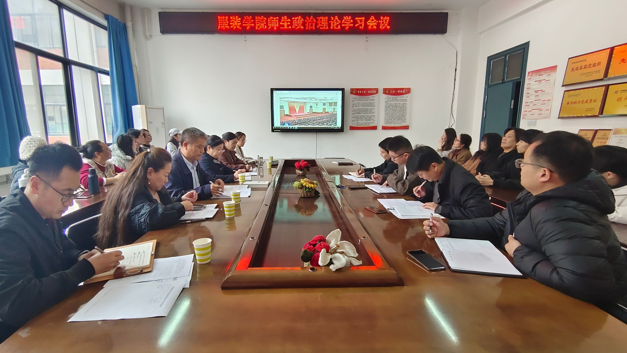 在11#204会议室召开师生政治理论学习专题会议,深入学习贯彻党的二十届四中全会精神。学院全体教职工及学生代表参加了会议,校党委宣传部新媒体中心主任胡泉灏到场巡听。会议由学院党委书记游红伟主持。