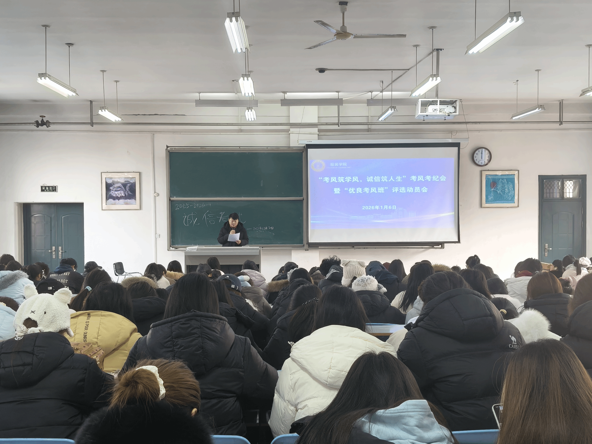 党委副书记高莉和副院长郭海燕分别作动员讲话,强调考风考纪是学院教学质量和学生综合素质的重要体现,要求党员和学生干部发挥模范带头作用,全体学生要遵守考试纪律,认真复习、积极应考、树立诚信意识、合理安排复习时间,争取考出优异成绩。希望同学们能够牢记使命,珍惜大学时光,努力学习专业知识,通过考试检验自己的学习成果,不断提升自身综合素质,为未来的学习之路奠定坚实基础。