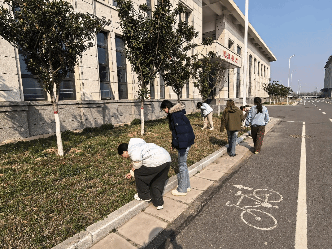 春日的校园阳光明媚,微风轻拂。下午时分,志愿者们准时集结,手持扫帚、垃圾夹等工具,迅速投入到清理工作中。大家分工明确,协作有序:有的负责清扫路面落叶和碎石,有的弯腰捡拾绿地内的塑料袋、烟头、废纸等细小杂物,有的负责将堆积的枯枝和砖块集中堆放。阳光下,师生们热情高涨,干劲十足,不放过任何一个卫生死角。春风吹过,偶尔扬起的落叶被志愿者们及时捡拾,现场忙碌而有序。后勤服务中心积极配合,提前准备好劳动工具,并安排车辆及时清运了集中堆放的较大杂物。