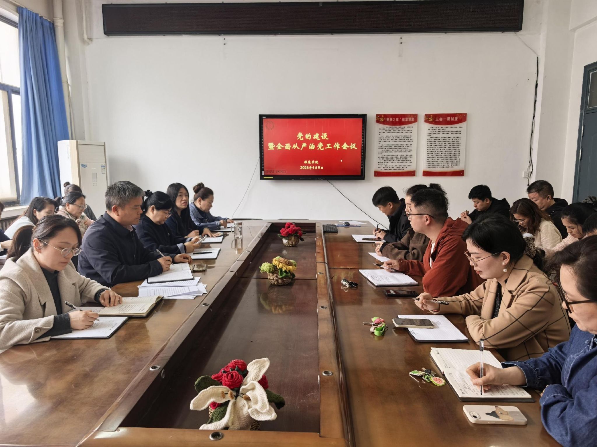 在11号楼204会议室召开全面从严治党工作会议,学院班子成员、党支部书记和全体党员参加会议。会议由学院党委书记游红伟主持。