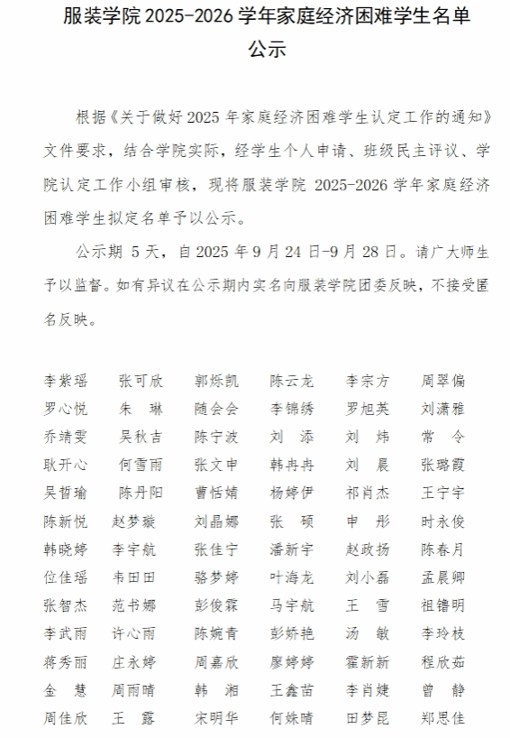 成人漫画 2025-2026学年家庭经济困难学生名单公示
