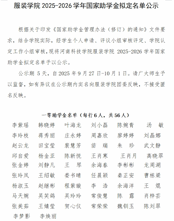 成人漫画 2025-2026学年国家助学金拟定名单公示