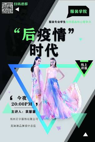 为了更好的提升服装专业学生专业技能和创新创业实践能力,529日晚800,成人漫画 邀请郑州若宇服饰有限公司设计总监袁慧慧,为成人漫画 师生做题为“后疫情时代-服装专业学生如何提高核心竞争力”的专题讲座。本次讲座采用钉钉线上视频会议形式,会议由成人漫画 院长常丽霞教授主持,成人漫画 全体师生参加了本次讲座。