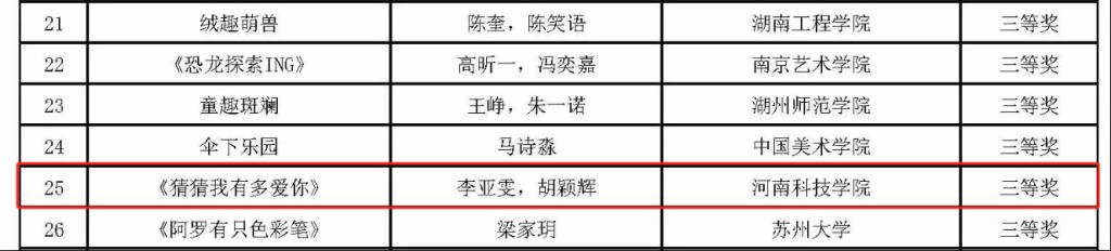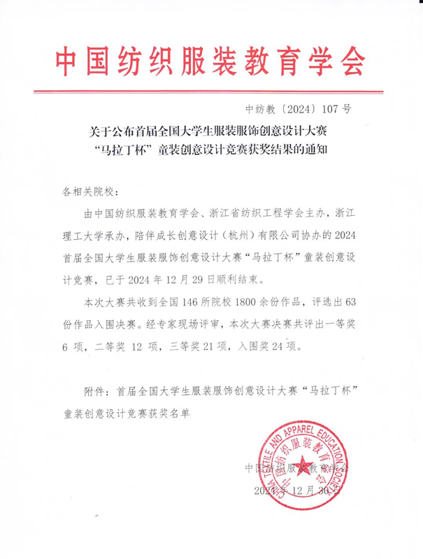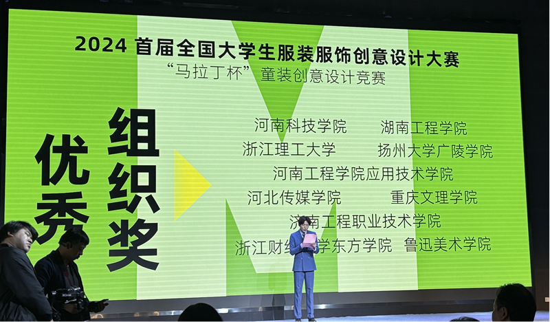 近日,由中国纺织服装教育学会与浙江省纺织工程学会主办的2024首届全国大学生服装服饰创意设计大赛“马拉丁杯”童装创意设计竞赛在浙江理工大学成功举办。我校荣获优秀组织奖,由成人漫画 李爱英老师指导,李亚雯、胡颖辉同学的作品《猜猜我有多爱你》荣获三等奖。